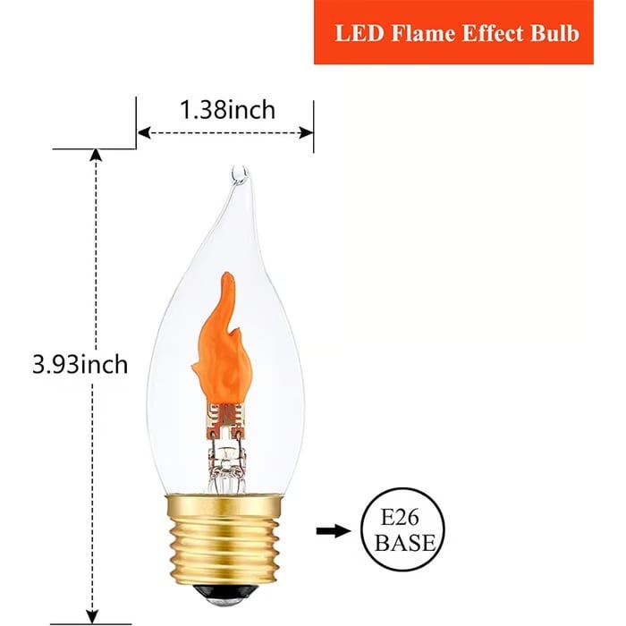 🔧Product Dimensions: 1.38"W x 4.17"H, LED flame chip with flame tip shape, applied in E12 socket base